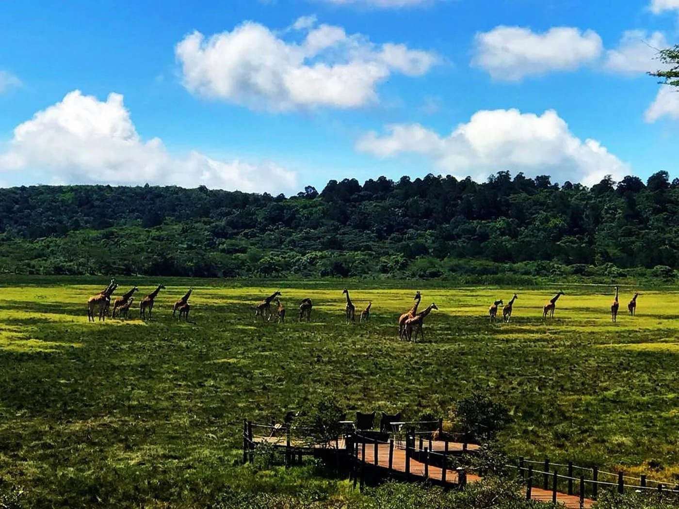 Der umliegende Nationalpark zeichnet sich durch eine abwechslungsreiche Landschaft mit Bergregenwald, Seen und offenen Savannenflächen aus und beherbergt zahlreiche Tierarten wie Giraffen, Zebras, Büffel, Antilopen, Warzenschweine sowie eine große Vielfalt an Vogelarten. Auch seltenere Tiere wie Colobus-Affen oder Kirk-Dikdiks können mit etwas Glück beobachtet werden.