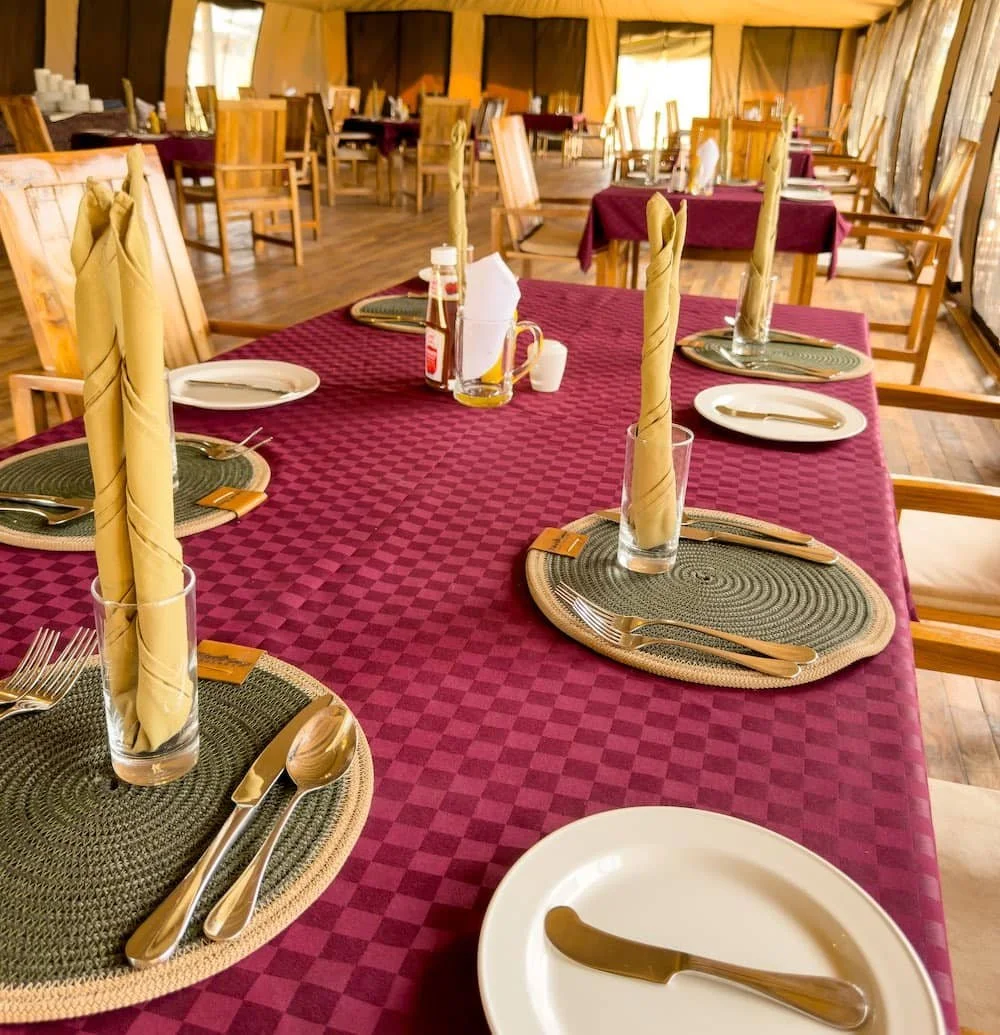 Vor jedem Zelt befindet sich eine private, überdachte Veranda mit bequemen Stühlen und einem Tisch – ein idealer Ort, um nach einer Pirschfahrt zu entspannen und die Ruhe der Serengeti zu genießen. Im Inneren der Zelte bietet ein kleiner Sitzbereich zusätzliche Rückzugsmöglichkeiten, perfekt für ruhige Momente, zum Lesen oder zur Tagesplanung – stets mit Blick auf die Natur, die das Camp umgibt.