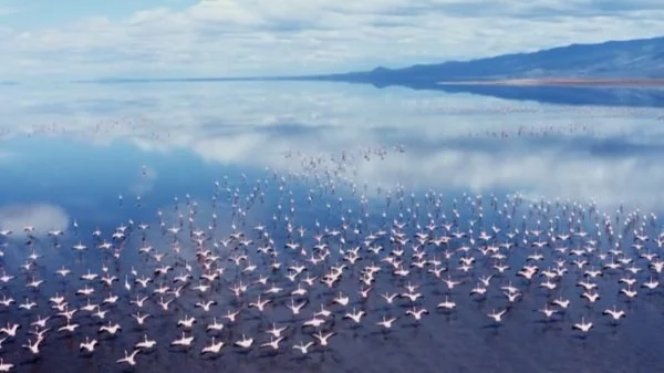 Vormittags spazieren Sie am Ufer des Lake Natron, nah an den Flamingos und sehen die von Vulkanen geformte Landschaft. Nach dem Mittag fahren Sie zurück nach Arusha.